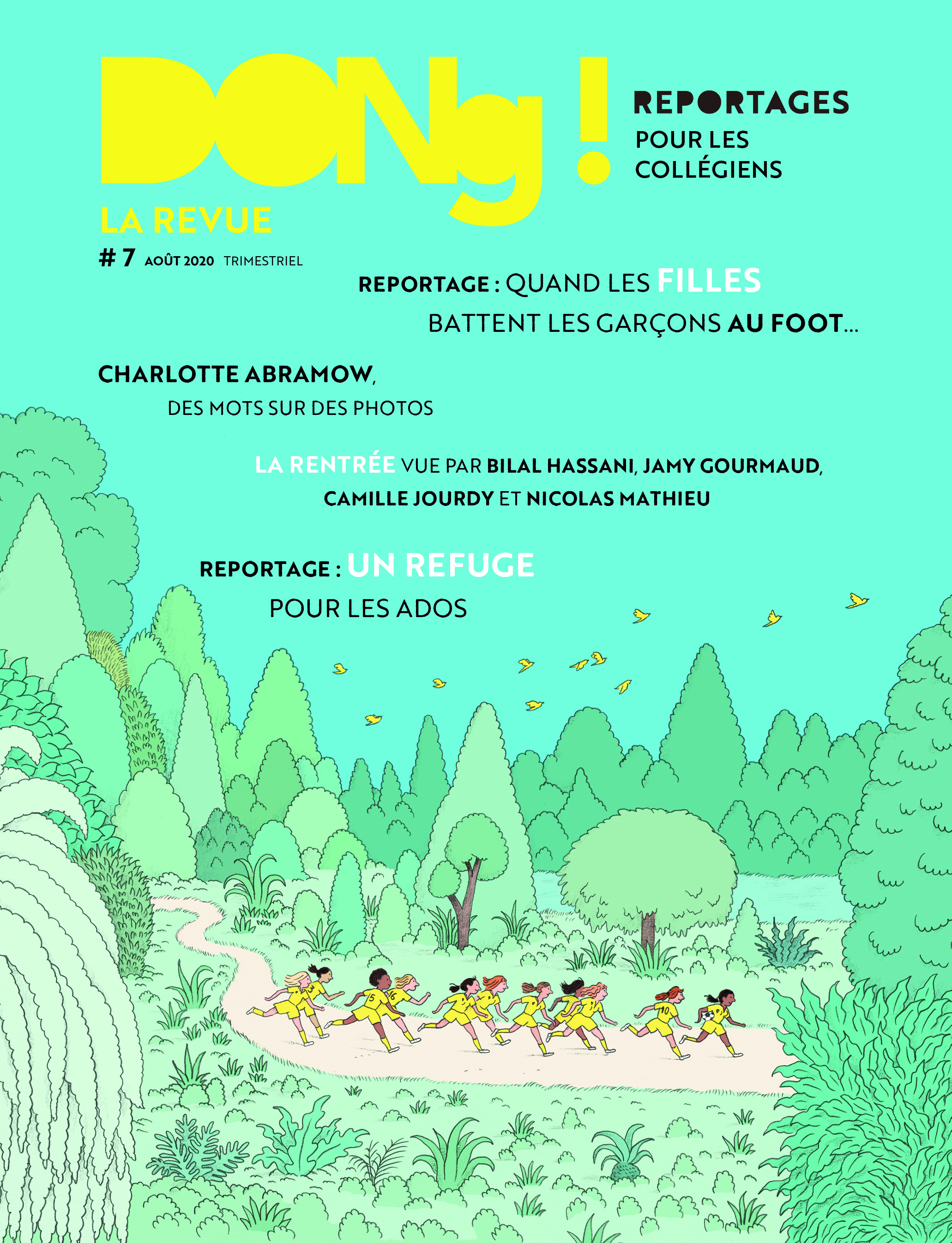 Il n’existe pas beaucoup de revue pour les collégiens avec de vrais reportages comme pour les adultes. Dong! veut prouver que ce n’est pas parce qu’ils sont des enfants qu’ils ne veulent pas comprendre le monde. Et il est possible de leur proposer de vrais articles, de vrais reportages tout en étant compréhensible. Pour ce n°7, la part belle est laissée aux filles.