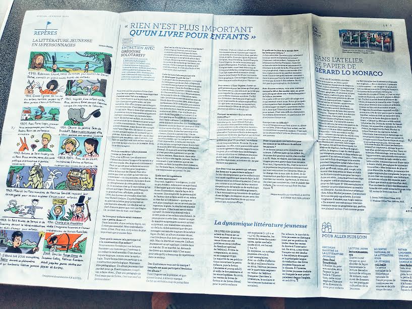 On poursuit le voyage avec un entretien avec Grégoire Solotareff : pourquoi avoir besoin d’une littérature à part ? « Je ne veux surtout pas faire des choses qui vont marcher sur recette. Après tout, le vrai succès n’est pas commercial, c’est le plaisir des enfants. Car se sont eux qui font les classiques. » Pour le prouver rien de tel qu’un zoom sur le travail d’un artiste artisan avec « Dans l’atelier de papier de Gérard Lo Monaco » qui donne très envie de voir ces réalisations.