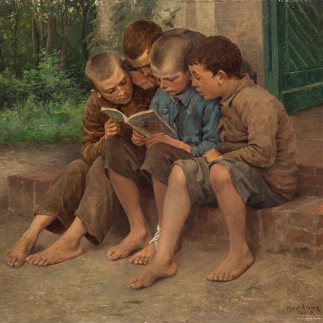 Tout commence avec une peinture de Max Arenz nommée « Le dernier des Mohicans ». On y voit quatre enfants modestes plongés dans la lecture. Au titre, on pense que cela doit être le roman de James Fenimore Cooper écrit en 1826. Une belle mise en bouche au vu du sujet.