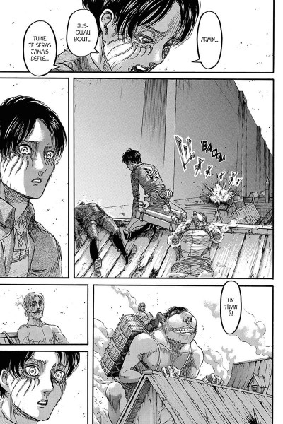 Depuis le temps qu’Hajime Isayama nous faisait miroité un secret dans le sous-sol de l’ancienne maison d’Eren, on va enfin avoir un début de réponse. Par chance, la cave n’a subi aucun dommage suite à tous les combats. Elle est indemne et la clé que possède le jeune titan ouvre un tiroir à double fond. Le suspens s’épaissit. L’histoire qui racontait que les derniers humains vivaient dans les murs est fausse. Non ? On ne s’est doutait pas du tout. On se demandait d’où venait les titans humains espions. Le mangaka ne nous laisse pas totalement sur notre faim. Il évoque une société classée par caste avec une histoire rattachée aux titans. Tout serait parti de là. Eren aurait un rôle clé à jouer. Lequel exactement ? Serait-il le roi sans le savoir ? On nous donne enfin un peu de données. L’histoire va connaître encore des rebondissements avec Armin maintenant titan. Un atout force et intelligence combiné qui va changer les combats. Les titans malins ne sont pas légions. Aucun doute que cela va donner un nouvel élan à la suite. Surtout que le titan bestial veut absolument sauver Eren. Pourquoi ? Nous en saurons plus dans la suite. N’oublions pas que la série n’est toujours pas terminée et ce n’est pas prévue non plus. Affaire à suivre.
