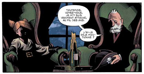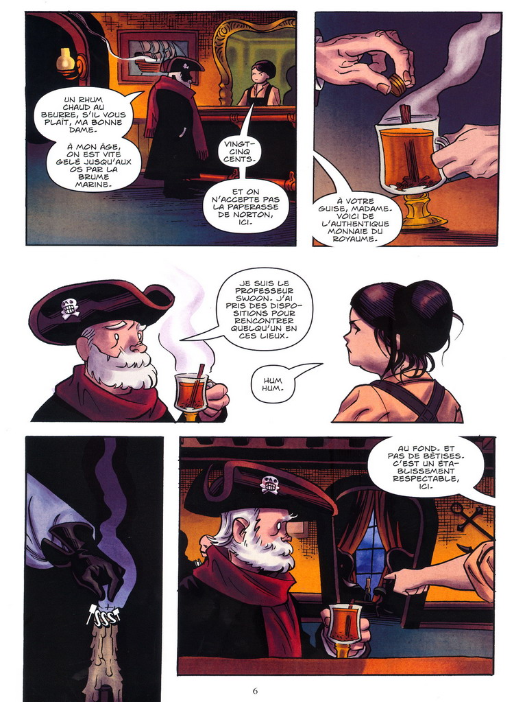 Quel plaisir de retrouver notre petite pirate pleine de fougue. Finie d’être la pleurnicheuse qui veut devenir une bonne épouse pour faire plaisir à papa. Maintenant, elle accepte qu’elle est peut-être la digne héritière d’une femme pirate qui savait se faire respecter. Elle refuse qu’il arrive quelque chose à l’attachant et gentil Scrimshaw. La justice doit se faire et pour cela elle porte des habits de rebelles. La donne change. Un retournement de situation enchanteresse. Cela ne peut donner que le bon exemple à des petites filles pour les inciter à sortir de leur carcan. Elles peuvent devenir ce qu’elles veulent et se donner les moyens pour réussir. Quel jolie message d’espoir et cela fait à travers un récit d’aventures avec des rebondissements d’habitude réservées à un public masculin. Le graphisme de Ted Naifeh émerveille toujours avec son style singulier très comics comme dans sa série Courtney Crumrin. J’ai hâte de lire les deux derniers tomes de la série pour savoir ce qui va se passer. Va t’il y avoir une quête avec la carte aux trésors.