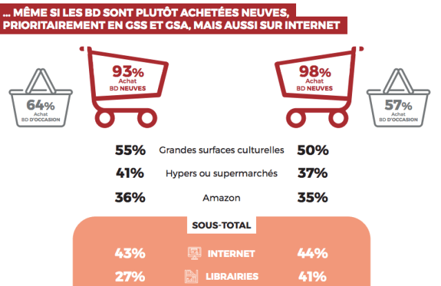Malheureusement l’achat de bd neuve se fait majoritairement dans les supermarchés ou les grandes surfaces spécialisées.