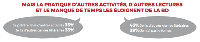 Les lecteurs lisent peu ou pas de bd soit parce qu’ils préfèrent faire autre chose ou lire autre chose.