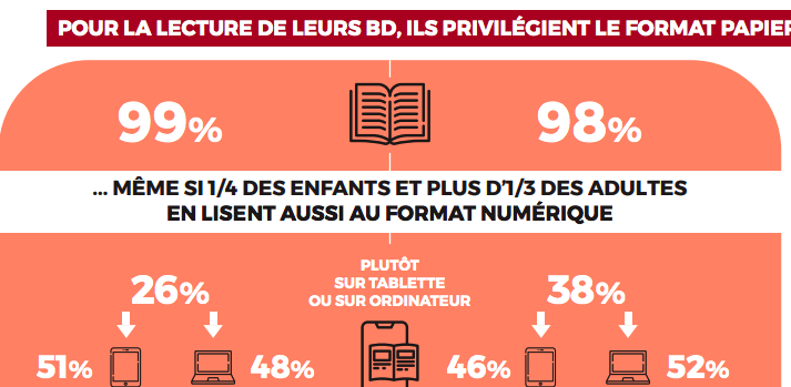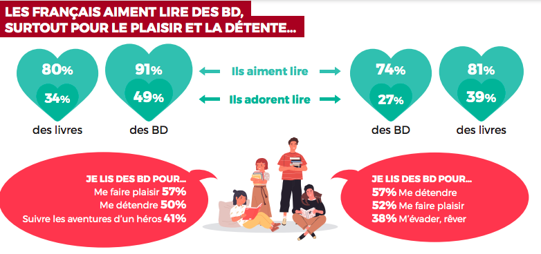 Les français lisent majoritairement et étonnement des albums. Au vue de l’augmentation des ventes des mangas, le chiffre me surprend.