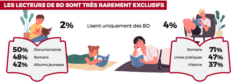 Le lecteur de bd lit aussi des romans, des albums jeunesse, des livres pratiques…
