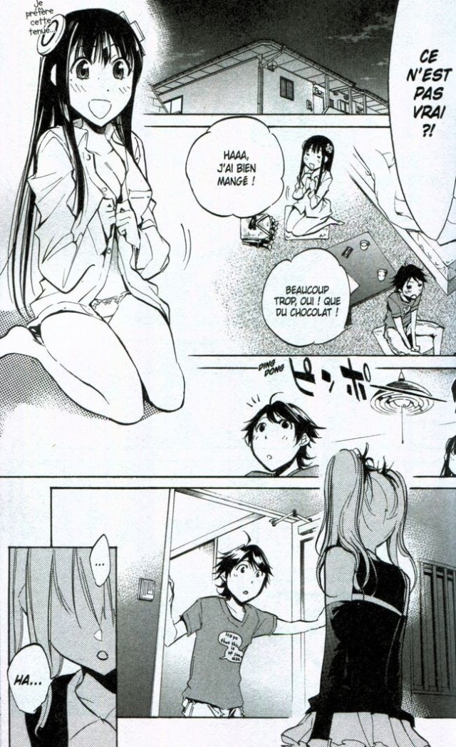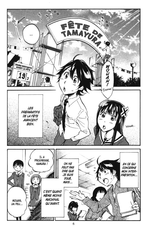 Même si ce n’est pas encore ça, Hamura joue un peu mieux son personnage. Le stress est bien présent car il va devoir embrasser sa création Michiru et aussi celle qu’il aime Fûko. Comment s’en sortir de cela? Il n’a jamais embrassé une fille et là pour une pièce de théâtre il va devoir en embrasser 2. Dans les fantasmes, cela serait une situation idéale. Toutefois, la réalité est toute autre. Il aimerait apprendre ce qu’est l’amour avec celle qui a détourné son coeur, Fûko. Surtout qu’elle ressent la même chose que lui. Il faut absolument réécrire le texte en enlevant les scènes de baisers. En effet, cela va perdre un peu de son intérêt mais c’est pour le bien de notre trio. Seulement voilà, le jour J les choses dérapent. Les sentiments se dévoilent et Michiru s’énervent en détruisant des décors. Seule l’honnêteté entre eux pour changer la donne, évidemment. Les spectateurs ne comprennent pas les choses. Qu’importe, c’est assez déroutant pour plaire. En plus, tout se termine sur un happy end. Presque, car un nouveau personnage vient de faire son entrée. Le fragile équilibre risque de se briser.