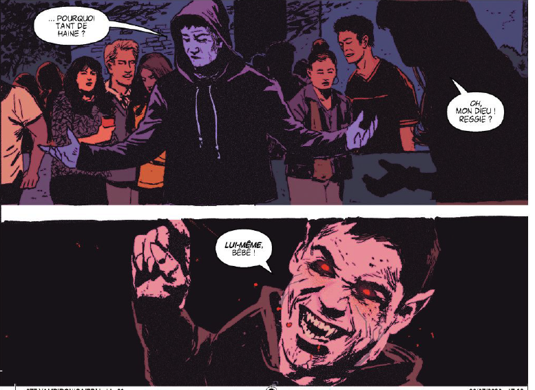 Il ne faut pas confondre Riverdale et Sunnydale. Même si des vampires sévissent dans les deux villes, il y en a une où la tueuse est absente. A la place, on trouve Vampironica ou de son petit nom Veronica Lodge. Tout comme Buffy, elle a les vampires en horreur. Sauf que malgré elle, elle a été mordue. Impossible de rester dans cet état surtout que son amoureux flirte avec une de ces copines. Archie est à elle et uniquement à elle. Après tout, ils sont les personnages principaux de la série « Riverdale présente ». Ce tome à la couleur hémoglobine ne manque pas de mordant. On n’a jamais le temps de s’ennuyer car notre héroïne est pleine de ressource. Heureusement que les geeks ont de la suite dans les idées et sont assez ouverts d’esprit. Grâce à cela, on assiste à une belle lutte des vampires contre les humains. Eau bénite dans des pistolets à eau ou en piscine, arbalète et ail ont de quoi faire peur à ces nouveaux monstres de la nuit. Bien entendu, le sang va couler et on va adorer ça. On aurait d’ailleurs envie que cela continue, un peu comme le scooby gang. Mais non, toutes les bonnes choses ont une faim, fin. Aucun doute que Riverdale va nous présente une nouvelle aventure.