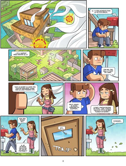 Les fans de l’univers de Minecraft vous être ravis de retrouver un peu de cet univers. C’est au tour du youtubeur Siphano, aux 2,5 millions d’abonnés d’avoir sa propre série en bd après Frigiel et Fluffy. D’ailleurs, le jeune homme de 29 ans sera accompagné au scénario par Jean-Christophe Derrien qui s’occupe déjà de la série sus-nommée. Un artiste déjà habitué aux adaptations avec des réalisations tels que « Le monde des Smileys », « Luraculous, Les aventures de Ladybug et chat noir ». Il a l’habitude manier les histoires pour le jeune public. Le duo arrive avec beaucoup de simplicité à entraîner le lecteur dans une aventure assez légère pour ne pas se faire des nœuds à l’esprit. Les jeunes garçons vont sans peine se retrouver dans le héros, Siphano, égoïste, narcissique et ingrat. Il doit souffrir aussi d’un trouble hormonal. Il s’aime beaucoup et ne doute pas souvent de lui. Côté graphisme, Giuseppe Quattrocchi a lui aussi l’habitude des séries ado/pré-ado avec « Magic 7 ». Il sait s’adapter au public. Ainsi on reste dans l’esprit carré mais avec un peu plus de rondeur. Cela donne moins l’effet jeu numérique en apportant un côté plus chaleureux. Après tout, on parle de sauver un animal dans une jungle hostile avec des zombies. C’est courant apparemment.