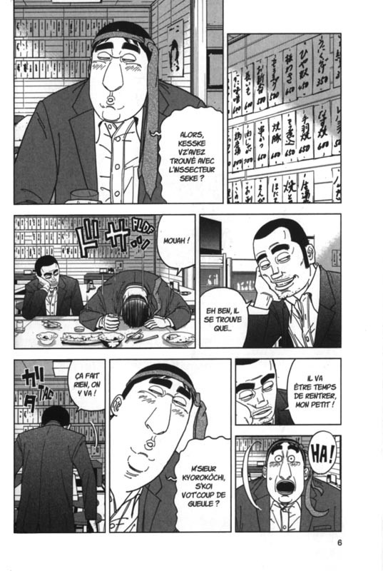 La quête de la vérité sur la tentative d’assassinat du haut-commissaire de l’agence de police nationale n’est vraiment pas de tout repos pour nos deux héros. D’ailleurs, on pourrait dire qu’ils ont plutôt chaud aux fesses ces derniers temps. Et par chance, on ne dénombre pas trop de cadavres sur le chemin. Car ce sussureur au parapluie n’est pas la tête de ce petit groupe nommé « les quatre-cent coups ». Une certitude par contre, il fait parti des 5 personnalités à la tête de la police. Et parmi la sécurité public une partie serait pour que l’on identifie cet homme pour s’en débarrasser pour éviter que le pays partent vraiment vers un axe de la violence. Et l’autre serait pour qu’on le laisse faire et que l’on se débarrasse de l’inspecteur Kurokôchi et de Seike. Une lutte interne qui permet aux deux hommes de faire leur enquête et des découvertes qui peuvent changer la donne. Mais ni dans la rue ni chez eux nos deux compères sont totalement en sécurité. Heureusement qu’un flic ripoux depuis de nombreuses années à des amis sur lesquels il peut compter. Donner de l’argent aussi cela aide beaucoup à s’entourer de personnes fidèles ou sans scrupules. Parfois c’est ce qu’il faut pour trouver les failles chez les adversaires d’autant plus quand on ne les connait pas. Surtout qu’un vielle ennemi essaie de lui faire un coup en traitre. L’inspecteur a plus d’un tour dans sa manche. Et attention bientôt ça va chier des bulles octogonales.