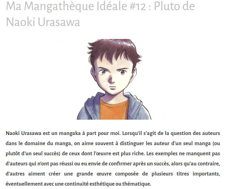 Pour faire simple, je tiens depuis un peu plus de 2 ans un blog sur lequel je parle essentiellement de manga, même si je ne m’interdis pas d’évoquer d’autres sujets. Je suis plutôt régulier, publiant environ 25 articles par mois, avec beaucoup d’avis sur des sorties du moment, mais aussi des articles plus travaillés de toute sorte. Je pense que mon blog reste relativement classique en soi, même si j’essaie d’apporter un peu d’originalité et de personnalité en traitant de choses qui me tiennent à cœur et en cherchant des angles d’approches un tant soit peu intéressants.
