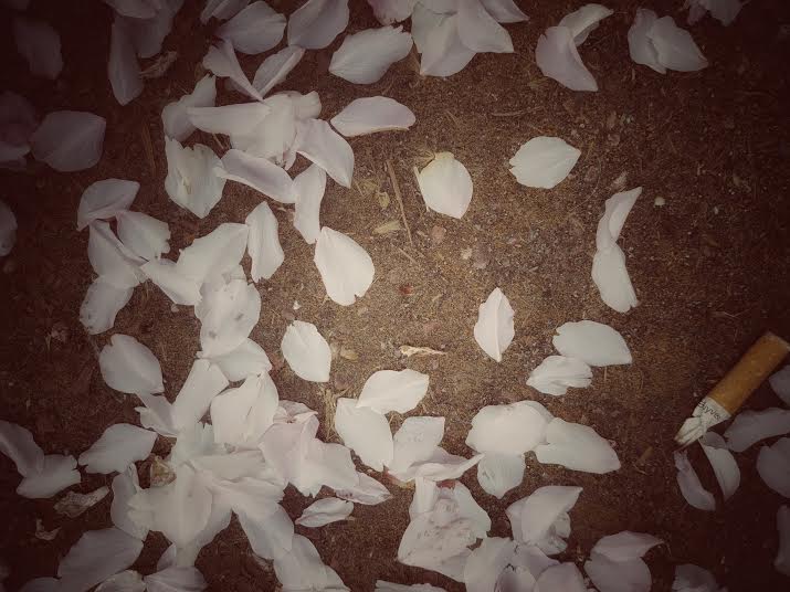 Comme nous sommes dans la bonne période, nous pouvons trouver des fleurs partout. Toutefois, j’ai décidé de prendre un autre angle. Les pétales, un déchet ordinaire parmi d’autres sur le trottoir.