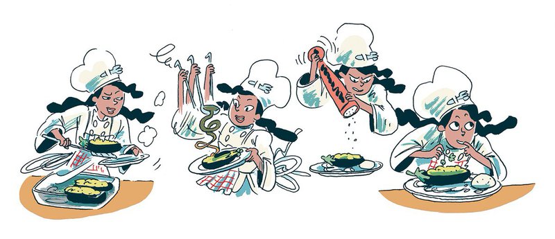 Nombre de ces questions, et des réponses potentielles, concernent en grande partie notre façon de manger et le contenu de nos assiettes. J’avais donc besoin d’un personnage où la nourriture occupe une place centrale dans sa vie. De là, Yasmina est née.