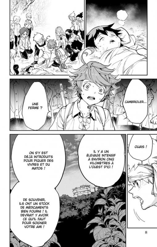 Quel bonheur d’avoir rencontré d’autres enfants qui ont pu fuir. C’est William Minerva qui les a envoyé à leur rencontre. Il faut aller se rendre à leur repaire. Le souci est que Chris est gravement malade et sur place, il n’y a rien pour le soigner. Pas le choix, les seuls médicaments à proximité sont dans une ferme. Ils forment une petite pour partir en expédition. Rien ne se passe comme prévu. La sécurité a été renforcée depuis les derniers incidents. Les petits jeunes n’étaient pas au courant de ces modifications. Grâce à leur ingéniosité et l’aide d’un redoutable combattant, ils peuvent fuir et soigner le petit garçon. Maintenant, ils peuvent aller dans le lieu plus sécurisé et une surprise attend Emma et Ray. Sur place, il y a le boss qui veut rencontrer ces jeunes arrivants. Quelle ne va pas être la surprise en voyant Norman. Mais il n’est plus le garçon d’avant. Son ingéniosité est au service d’un nouveau monde. Sa parole est-elle vraie? Emma ne veut pas que l’on tue tous les monstres. Faut-il jouer le même rôle qu’eux? N’est-il pas mieux d’essayer de construire des choses ensemble à construire?