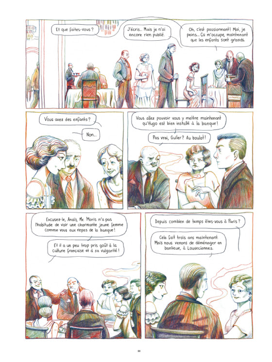 Beaucoup d’artistes femmes ont été oubliés volontairement ou non de l’Histoire. Léonie Bischoff a décidé de mettre son talent au service d’un récit hors norme. Elle choisit une artiste un peu mise de côté, Anaïs Nin. On ne pouvait rêver plus bel hommage à une personne. La scénariste a construit une magnifique histoire en laissant autant de place aux fantasmes qu’à une forme de réalité. On se laisse porter page après page avec ravissement difficile à contrôler. Le dessin est vraiment sublime. Il est d’une part d’une grande précision, finesse. On voit les détails partout avec une somptueuse part d’onirisme. Le rendu visuel est étonnant. Léonie Bischoff utilise toutes les couleurs distinctement et cela surprend, émerveille. Le regard s’attarde sur les détails avec les teintes qui produisent un rendu incroyable. Personnellement, cela m’a donné une envie folle de broder avec plusieurs de ces dessins car le rendu peut être sublimé avec du fil. On ne reste pas indemne à la fin de l’ouvrage tellement on a vécu une expérience forte et stupéfiante visuellement. Un roman graphique a gardé dans sa bibliothèque et à offrir, bien entendu.