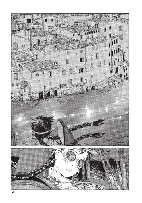 Mikura doit aller livrer le colis de son grand-père. Malgré sa connaissance du vol, de la lecture d’une carte, il est bien difficile de trouver cette fameuse île errante. En plus, bientôt, elle n’aura plus assez ni d’essence ni de nourriture. Le plus grand hasard lui fait arriver aux abords de cette étrange ville même si cela lui a valu quelques tirs hostiles. Elle doit livrer le colis pour Mme Amelia et elle fera à n’importe quel prix. Sur place, tout semble si perdu, hostile, inhabituel… Mais voilà, la dame n’est plus là. Cela fait bien longtemps qu’elle a quitté le lieu. Quelque chose l’intrigue sur le lieu et sympathise avec un enfant. La fascination l’incite à avoir une nouvelle vie.