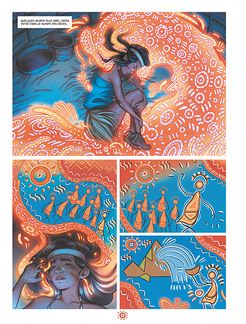 La situation dans le village empire de jour en jour. Les tensions deviennent permanentes et tout est prétexte au conflit. Jedda veut faire quelque chose car l’homme-rêve ne revient toujours pas. On lui rappelle qu’en tant que femme, elle ne doit rien faire. La jeune aborigène de l’Australie du sud-est ne veut pas rester à rien faire. Alors elle prend la décision d’aller à la recherche de l’homme-rêve. Qu’importe le temps que cela prendra, elle fera revenir l’eau au village. Discrètement, elle part en quête et elle trouvera les réponses. Le chemin est long et la sécheresse rend plus d’une de ces rencontres méfiantes. Puis tout commence à changer lorsqu’elle retrouve le shaman qui après quelques réticences lui apprend son savoir. Maintenant la voilà devenue femme-rêve, elle doit poursuivre son chemin pour trouver la vérité. Face au problème identifié, rien ne va l’inciter à baisser les bras, bien au contraire. A partir de ce moment là, une nouvelle destinée s’offre à elle.