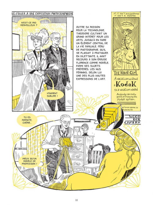 Bien souvent, le nom de Lee Miller (1907 – 1977) est rattaché à cette photo, prise David E. Scherman, où elle se lave dans la baignoire d’Hitler. Mais cette femme est bien plus qu’une simple modèle sur une photo mémorable. On peut y voir ces boots pleines de terre qui ont foulé Dachau et Buchenwald. Elle a été à la fois une fille à son papa, un modèle de mode, muse de Man Ray, une photographe, une photojournaliste de guerre, une voyageuse, une maman et une cuisinière audacieuse. Elle a connu la douceur de l’enfance, la tendance un père un peu pervers qui l’a prenait en photo nue, une agression sexuelle jusqu’à devenir une femme libérée, artiste. Une personnalité inspirante qui a donné envie à Eleonora Antonioni de raconter sa vie. Surtout que l’on oublie souvent que les femmes étaient présentes partout alors qu’on les omet volontairement dans les traces historiques. Consacrer une bande dessinée à une telle égérie est bien plus que lui rendre hommage. C’est permettre au monde de remettre une personne à sa place et d’éveiller les consciences. Elle nous emporte avec son trait dynamique, grave qui joue avec des hachures et des nuances de jaune. La mise en page s’adapte à chaque période de vie avec le style Art déco et du texte en barbelé pendant la période de conflits. La forme et l’épaisseur des cases varient au fur et à mesure ce qui induit de l’énergie. Le plaisir de lire se poursuit du début jusqu’à la fin. Cela donne une furieuse envie d’en savoir plus et de voir son travail.
