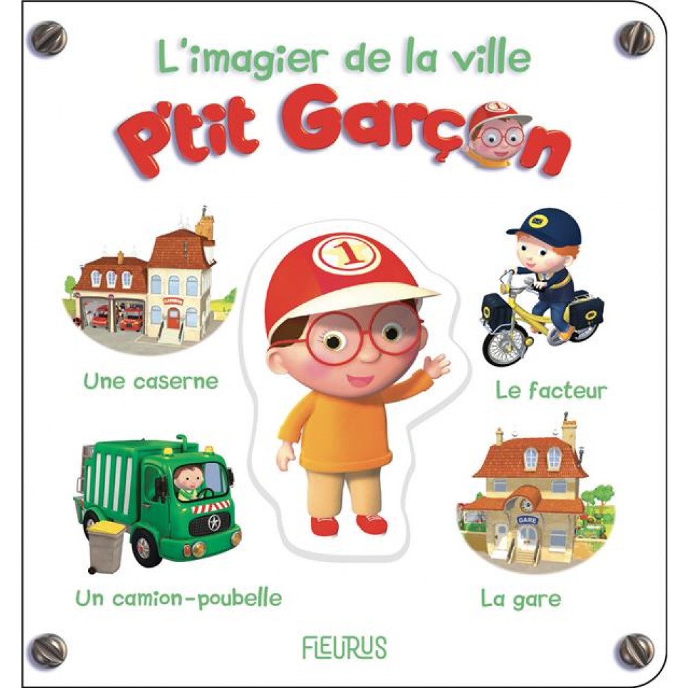 P’tit garçon découvre la ville. Et il faut dire qu’il a pleins de choses à voir. Pour que la ville reste propre, de nombreux acteurs permettent cela comme les éboueurs avec les camions poubelles, les balayeuses, un camions à jet… Et quand il y un plein à faire, direction la station service avec ces pompes à essence, un pompiste, des bouteilles de gaz… C’est du bureau de Poste que le facteur Mathéo va faire sa tournée, il peut la faire aussi bien en voiture qu’en vélo. L’hôpital est un lieu aussi avec de nombreux passages avec les ambulances, les docteurs, les secouristes… Dans un autre registre, dans un commissariat de police, on y rencontre aussi bien des policières que des voleurs. Bastien passe souvent par la gare, on peut y voir un wagon, une locomotive, des valises, une horloge… Dans la caserne, l’action ne manque jamais, il faut toujours être prêt à partir avec le camion de pompiers, une rampe, une sirène… Et la ville peut changer de visage grâce aux chantiers où l’on trouve beaucoup de machines comme un camion-toupie, une grue ou une tractopelle.