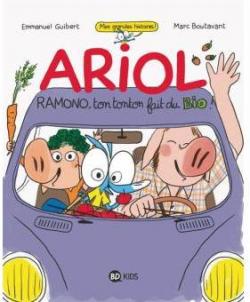 Ariol et Ramono sont les meilleurs amis. D’ailleurs en classe, l’instituteur doit bien souvent les séparer car ils n’arrêtent pas de parler. Cette fois-ci, c’était pour une bonne raison car Ramono a quelque chose à proposer. Son oncle fait des livraisons en ville de produits bio récoltés par ces amis, Monsieur Marmouge et Monsieur Péduret. S’il veut bien, ensemble, ils peuvent accompagner tonton Jean-Soue. Cliente après cliente, le livreur dépose la cagette de légumes, de fruits, de confitures, d’oeufs, d’alcool les unes après les autres. Du moins c’est ce qu’il fait en temps normal mais voilà qu’à l’arrière de la camionnette se cachent les deux amis. Ils ont voulu lui faire une farce. Madame Fourrastier est quelqu’un de très exigeant qui vérifie tout pour être certaine que les comptes sont bons. Il ne faut pas tarder et partir. Seulement voilà qu’une voiture les percute. Au volant du véhicule, c’est Vera qui est au volant, terriblement désolée. Sa jalousie l’a emporté sur sa raison et l’a suivi pour être certaine qu’il ne voyait pas d’autres femmes. Qu’importe, la police arrête tout la troupe pour mettre l’affaire au clair. Au final, un heureux évènement va réunir tout le monde, même Ariol et sa famille.