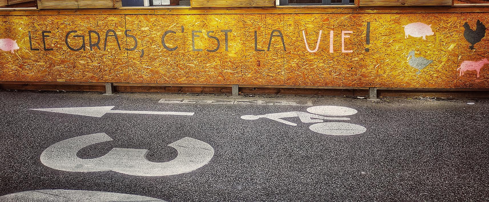 On peut trouver des petites choses charmantes comme une plante qui pousse du béton, une graph sur un mur, une devanture d’un immeuble… Pour ma part, j’ai choisi un tag sur une terrasse éphémère à Paris assez singulière.