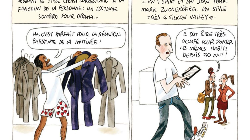 Les bande dessinée qui allait un chercheur et un.e dessinateur.rice arrivent à mêler le sérieux d’une démarche et l’humour pour la rendre accessible à tout à chacun. Et le duo autrice de BD, Zoé Thouron et le sociologue, Frédéric Godart ne déroge pas à cette règle et avec un sujet des plus sérieux et surprenant à la fois : la mode. Qui n’a jamais été victime de la mode? On ne parle pas du nombre d’adolescent qui veulent porter la même chose que les autres et de gens populaires. Les adultes sont aussi touchées par ce phénomène comme toutes ces personnes prêtes à payer 70€ pour avoir juste un tee-shirt avec le nom d’un joueur de foot. L’appartenance sociale doit-elle forcément en passer par là? Pour mieux rentrer dans le sujet, dans le dur, l’histoire débute avec deux personnes qui ont été des figures de la mode de leur époque avec la Reine Marie Antoinette et Rose Bertin. Des figures tutélaires de ce qu’il fallait porter et toujours à la pointe de l’innovation. Et puis quand on a un budget illimité, il est possible de travailler en plus avec les plus belles matières. Une façon pour une femme de pouvoir de s’imposer en société et l’air de rien de faire fonctionner l’économie. Toutes les autres femmes passaient leur temps à la copier. Ainsi va la mode et ainsi elle prend son essor. Dessinatrice et sociologue s’invitent tels des figurants dans le récit et peuvent alors voyager dans le temps et l’espace. Il faut dire que la mode a de très nombreux représentants. Toutefois, il ne faut pas confondre style et mode qui se rapproche beaucoup. « La monde impose son pouvoir au style, c’est en quelque sorte son antithèse. Mais alors le style, c’est quoi? Pour se rapprocher de la mode, voyons déjà ce qu’elle n’est pas! Pour comprendre, on va aller voir ce que faisait les dandys au début du 18ème car ils ont articulé la question du style opposé à la mode ». Ces hommes allaient contre la mode avec beaucoup de couleurs et d’extravagances. Ils étaient assez sobre avec une sorte d’écharpe blanche autour du coup, une veste assez ouverte devant et courte et assez longue derrière, qui arrivait au genoux. Une identité quand on est connu ou que l’on fait parti d’une communauté, le style compte.