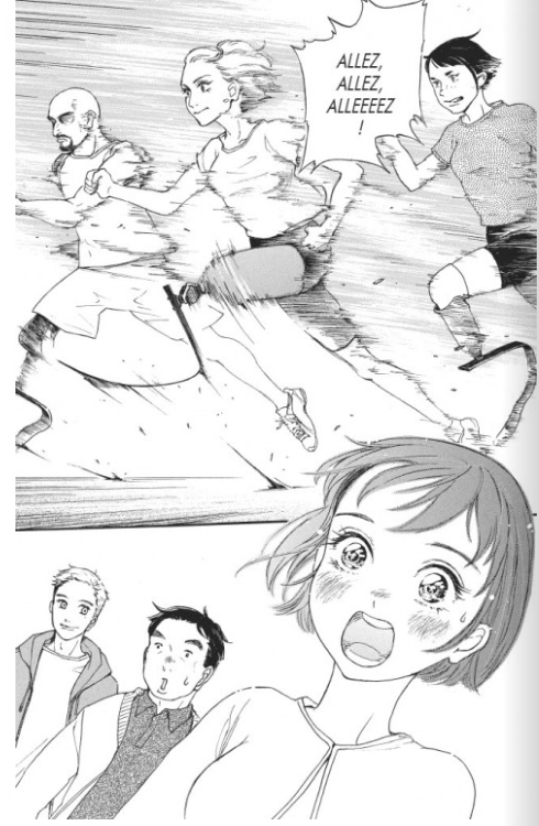 L’avis Les blablas de Tachan : « Ainsi, j’ai été surprise d’autant adhérer à un titre mettant en avant un sujet pourtant délicat. L’autrice parvient avec un talent certain à nous passionner pour le devenir de cette adolescente amputée qui va se retrouver grâce à la découverte de la course pour handicapés. Alors bien sûr le titre a quelques défauts, la narration va bien vite, il y a pas mal de facilités, tout le monde il est gentil et l’héroïne a un vrai couloir devant elle, mais c’est dans l’esprit des shojos sportifs à la Jeanne et Serge, je trouve, alors ça ne m’a pas gênée. «