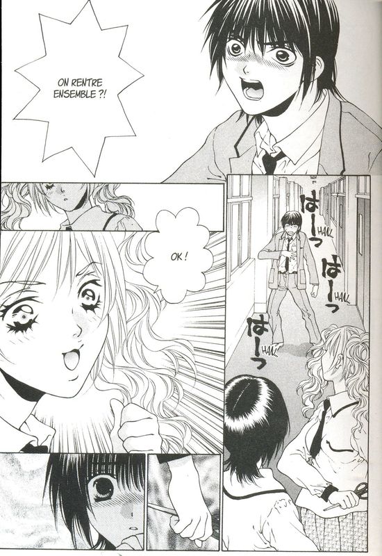 Même s’il n’y a rien de vraiment surprenant dans cette suite, je suis un peu plus mitigée. Il y a un petit quelque chose de dérangeant de construire une histoire d’amour pour adolescent avec en toile de fond la pédophilie. L’héroïne, Hinako a été abusée par son beau-père. Elle a fait une fausse-couche la première fois et a donné naissance à un petit garçon la deuxième fois. Cette naissance a fait prendre conscience à la mère des abus subis par sa fille innocente. La mangaka avait abordé le sujet de façon globale dans le premier tome et là donne plus de détail. Est-ce que cela apporte vraiment quelque chose? Et puis, un soir la jeune fille rentre chez elle et là de nouveau un homme veut la violer. Décidément, elle n’a vraiment pas de chance. Mais là, apparaît un garçon, Daisuke, et sauve la situation. Plus leurs yeux se croisent et plus l’amour grandit dans leur coeur. On pourrait croire cela mignon. Ce côté assez sombre et malveillant devait-il être si triste? Surtout que la mineure va vivre seule, à même d’être encore plus victime. On ne trouve pas d’évocation d’associations ou autres qui auraient pu l’aider à se reconstruire. Se faire violer, d’autant plus par son beau-père, a quelque chose de traumatisant. En aucun cas, cela s’oublie simplement comme si on avait perdu un simple objet. En effet, Hinako craint les hommes et leur contact. C’est tout. Maintenant elle découvre l’amour, les premiers émois tout comme Daisuke. Là-dessus se rajoute un pseudo carré amoureux où se rajoute une fille possessive et une ancienne amie. Que va t’il en sortir de tout ça?