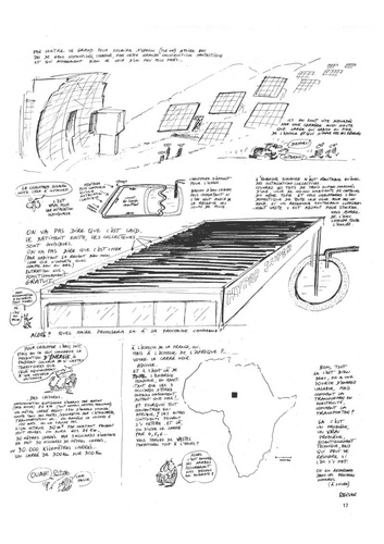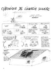 Le sujet de l’écologie est très présent depuis les années 70. Une conscience propre à ce sujet apparaît et s’affiche aussi bien dans la presse, la littérature, la bande dessinée… Jean-Marc Reiser prend ces crayons et son humour sarcastique pour critiquer une société irréfléchie et corrompue. On s’étonne que certains dessins sur l’énergie solaire, l’éolien ou le pétrole sonnent toujours avec autant de réalisme de nos jours. Les choses ne changent pas vraiment et pourtant les politiques promettent toujours autant. La démagogie est d’autant plus présente en période d’élection où l’on flatte aussi les policiers, vue comme répresseur. Les chroniques de l’énergie solaire monte les possibilités de l’imaginaire à inventer de nouvelles choses même les plus absurdes. Demain se créé dans les être audacieux d’hier qui pensent au delà des frontières et des limites. Le rire permet de relativiser, de se moquer de certains prétentieux qui ne jurent que par le pétrole ou le charbon, de voir la force des lobbys… Par contre, le recueil ne se lit pas forcément d’une traite car cela risque d’être un peu indigeste. Il faut parfois s’adapter au graphisme assez direct du dessinateur et la quantité de texte qui peut parfois sembler répétitif. Toutefois, la lecture incite à réfléchir, à se poser des questions sur la situation actuelle et réfléchir à l’avenir.