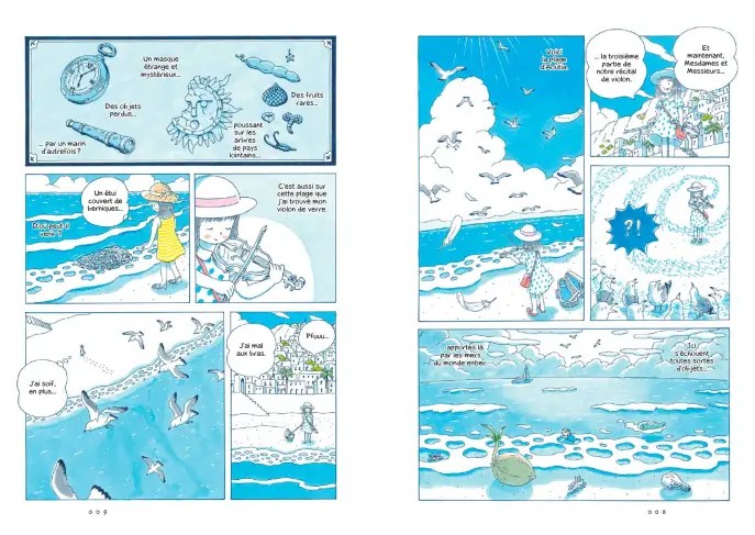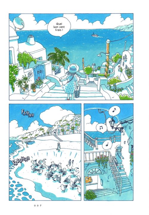 Après les saynètes surréalistes de Tohu-Bohu, Shinya Komatsu revient avec un nouveau recueil de rêves éveillés, situés cette fois dans une petite ville ensoleillée où le temps semble figé à l’heure de la sieste. On y suit avec émerveillement le quotidien de la jeune Lisa, qui telle une Alice du bord de mer semble dotée d’un talent naturel pour faire de curieuses découvertes : un violon en verre d’écume, un pilote de parapluie volant, un phare en mal d’escapades…