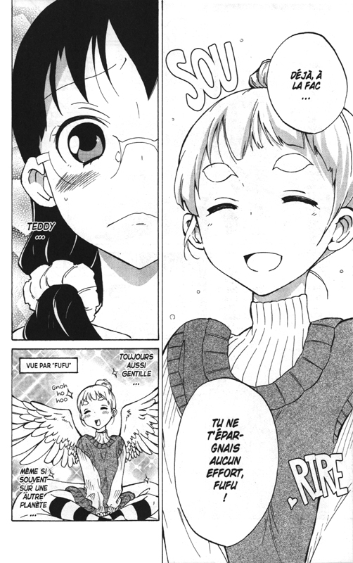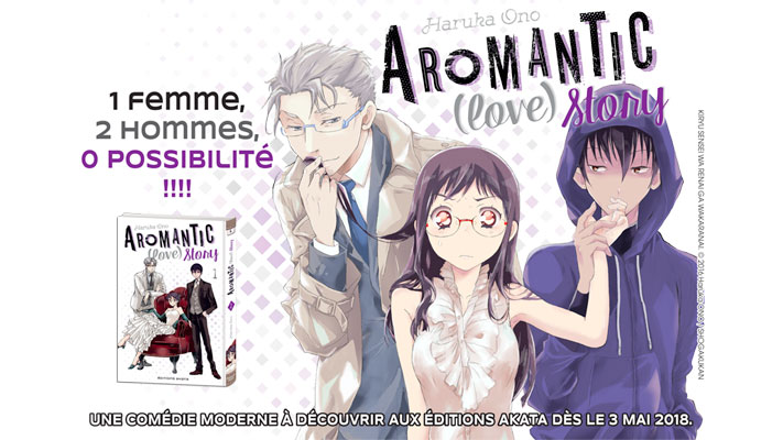 Je me disais que j’en avais marre des histoires d’amour gnangnans avec une fille innocente et des beaux mecs forts et dominateurs. Puis je tombe sur hasard sur « Aromantic (love) story » où l’on voit des mots clés : comédie, asexualité et féminisme. Le genre avec des histoires d’amour peut-il alors évoluer? Le début s’annonçant prometteur avec trois femmes qui vivent ensemble. Elles sont toutes célibataires et trentenaires qui font qu’on leur demande sans cesse quand elles vont se marier. L’une est bisexuelle, l’autre aime l’amour virtuelle et la dernière serait asexuelle. Haruka Ono propose quelque chose d’original. D’autant plus que l’héroïne, Futaba Kiryû, est une mangaka qui écrit une série à succès qui parle d’amour. Pour rendre les choses intéressantes pour les lecteurs, elle a potassé des livres. Tout était réuni pour nous faire croire que les choses avaient changé. Et bien non, le schéma redevient assez classique. Deux hommes veulent sortir avec elle en sachant qu’elle n’a jamais aimé. Un ressemble à psychopathe dangereux qui travaille pour elle et l’autre un très beau gosse qui la voit pour l’adaptation en animé de sa création. Que faire? Elle va fréquenter les deux et voir. Les stéréotypes qui devaient être dépassé reviennent sur le tapis. Même si le personnage central est assez fort, avec des convictions, des façons à elle de les exprimer. La mangaka a vraiment cherché à lui donner du volume, avec ces défauts et ces qualités. On s’attache très facilement à elle qui varie entre les crises d’angoisse, existentielles et de colère. Pourtant, je n’ai pas envie d’aller plus loin et savoir ce qui va se passer.