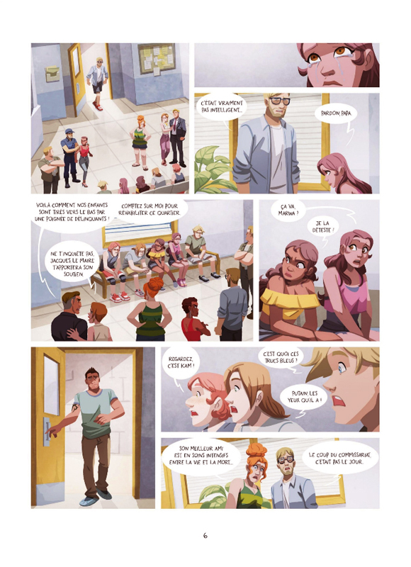Cee Cee Mia revient avec la suite des aventures de son crew. Une bande d’amis à l’image de la France, dans sa diversité et sa richesse. Qu’importe d’où l’on vient et où l’on va, on peut partager une passion commune, se respecter, s’écouter et s’apprécier. Un regard assez peu présenté dans la bande dessinée jeunesse et d’autant plus sous l’angle de la danse. Elle dresse aussi un portrait de la société qui perçoit souvent les cités comme des zones dangereuses, à proscrire où rien de positif n’émerge. Ce n’est pas totalement faux. Toutefois, il faut nuancer les propos en ne faisant pas une généralité d’une population face à une petite minorité de malfrats organisés. Des gens malveillants et malhonnêtes, on en trouve partout, même dans les quartiers huppés. D’ailleurs, la scénariste aborde cet aspect sans demi-mesure avec un jeune adulte qui a tué quelqu’un qui le gênait. Il n’a aucun scrupule à tuer. Le danger est présent même s’il reste tapi dans la discrétion. Le plus important est la force de l’amitié et de la solidarité. Cela permet de créer, de se dépasser et d’aller au-delà des attentes des autres ainsi que des aprioris. Une histoire assez positive qui reste pourtant réaliste. Lesdeuxpareilles continuent d’apporter avec leurs dessins numériques de l’énergie, du dynamisme, du peps. On peut regretter de ne voir que des gens beaux, minces, en bonne santé qu’importe leur âge ou leurs origines. La représentativité pourrait être encore plus large, fidèle à la réalité et moins hétéro-normée. Néanmoins, le trio propose une agréable bande dessinée qui donne envie de retrouver aussi bien les artistes réels que fictifs.
