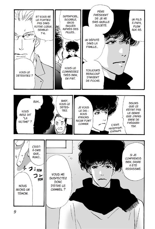 Do not say Mystery nous entraîne aux côtés d’un singulier Sherlock Holmes des temps modernes. L’action fait ici place à la réflexion, à l’écoute et à la parole. Totono observe, analyse, déduit et conseille, avec une franchise frôlant parfois l’impertinence. Il pourrait sembler hautain mais n’émet jamais de jugement, quelles que soient ses conclusions. Il est jeune et réservé mais pose une regard éclairé surs ses contemporains. Et l’on élucide à ses côtés autant de petits tracas quotidiens, souvent révélateurs de la société japonaise, que de crimes sordides.