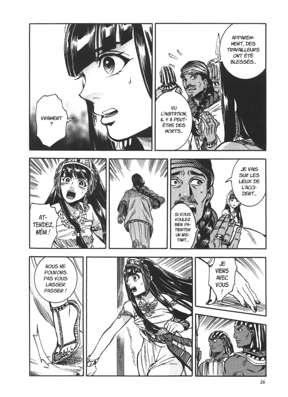 Hatchepsout n’avait pas vraiment donné son avis pour devenir reine. Mais elle est certaine qu’une grande destinée s’annonce pour sa personne. Il va falloir qu’elle fasse les bons choix. Apprendre à jongler entre son époux jaloux et coureur de jupon ainsi que ceux qui veulent garder leur chasse garder demande des talents. Dans ce tome, elle arrive à mieux percevoir qui sont ces ennemis et ces soutiens. Son bras droit est éloigné et remplacé par quelqu’un de moins brillant. Que cela ne tienne car ils se retrouveront plus tard, le destin les réunira forcément. Chie Inudoh continue d’installer dans ce tome le contexte, les limites et les possibilités de l’influence. Les jeux de pouvoir et de nuisance s’installent. La sororité a aussi ces limites d’autant plus quand une favorite est enceinte. Notre héroïne va devoir faire des choix et renoncer à des principes. La mangaka prépare le terrain car une situation très conflictuelle et tendue va venir par la suite. Dans ce tome, nous ne pouvons que nous attacher d’autant plus à la reine qui montre son altruisme. Une chose qu’une personne de pouvoir ne doit jamais montrer. Les pages se tournent avec plaisir surtout avec ces dessins très précis et très lisibles. On veut suivre la destinée de cette jeune femme hors du commun qui refuse de se faire marcher sur les pieds par qui que ce soit et d’autant plus quand c’est un homme. Cette élite qui doit être des représentants des divinités qui se vautrent dans la luxure et l’abondance n’est pas très digne. Sexe, argent et nourritures sont des éléments qui poussent à des révoltes. Est-ce que cela va arriver ? Va-t-il falloir châtrer certains mâles pour calmer leurs ardeurs ? L’avenir nous le dira car bien entendu nous voulons aller plus loin.