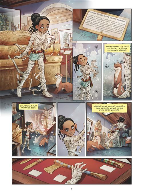 Les aventures palpitantes d’une petite momie plongée dans le monde d’aujourd’hui ! Enfermée dans un musée depuis des siècles, la princesse Tâvutatèt rêne de voyager. mais la célèbre pharaonne Hatchepsout, sa mère, le lui a toujours interdit. Pourtant, une nuit, Tâvutatèt est obligée de fuir des ennemis aussi puissants que mystérieux. Commence alors un trépidant périple qui mènera la jeune momie jusqu’en Angleterre…
