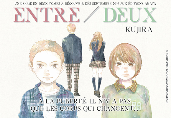 « Entre deux » est vraiment un manga assez surprenant. On pourrait s’attendre à trouver quelque chose de très classique et pourtant ce n’est pas le cas. Déjà à la couverture, on est loin de ce que l’on peut voir pour une simple histoire d’amour d’adolescente. L’histoire débute avec le décès tragique du frère de Saku et qui lui vaut alors une forme de déni de sa famille. A l’école primaire, elle rencontre Nozomi qui se laissait pousser les cheveux car sa mère voulait une fille. Tout deux possèdent un lien particulier car ils savent le sens de la solitude chez soi. Une amitié sincère se créé entre eux deux jusqu’au jour où les sentiments prennent le dessus. Seulement seule Saku a une attirance. Elle ne s’est d’ailleurs pas rendu compte qu’un autre était amoureux d’elle. Le triangle amoureux est posé. Kujira a décidé d’y intégrer des thèmes difficiles comme le décès, le déni des parents, la modification corporelle des adolescents, la découverte des premiers émois… Ce qui m’a surprise est le fait d’aborder les règles avec les douleurs qui vont avec. Et surtout que les garçons soient informés de ce qui arrive aux filles tous les mois. Un sujet très rarement abordé d’autant plus dans un ouvrage jeunesse. Cela en fait quelque chose de rare et de très pertinent. La mangaka ose et propose une création tendre et réaliste.