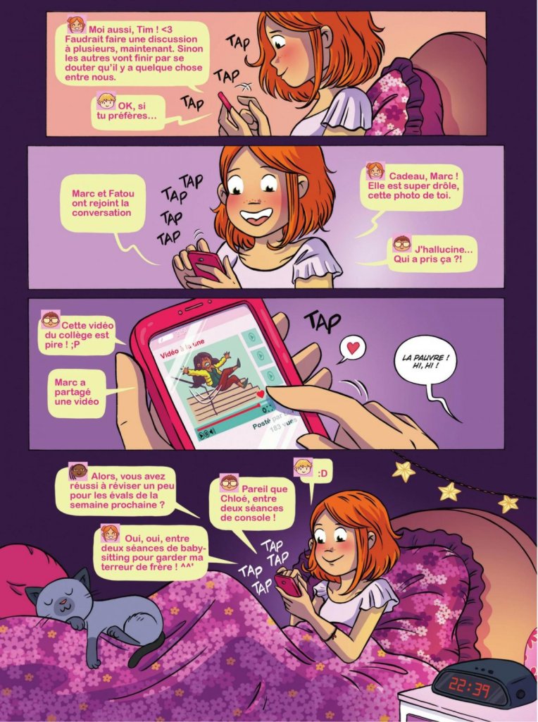 En discutant avec ces amis sur les réseaux sociaux, Chloé découvre une vidéo où il y a une de ces camarades. Maryam est tombé et quelqu’un l’a filmé. En plus, les images n’arrête pas de circuler. Les pestes de l’école n’arrête pas de se moquer d’elle. A cela se rajoute les commentaires haineux sur sa page personnel. Les choses empirent jour après jour. La mistinguette refuse de laisser la situation comme elle est. Il faut agir et ne laisser personne vivre un tel cauchemar. Son investissement n’est pas passé inaperçu aux yeux d’un certain LOL. Il va s’en prendre à elle et lui faire connaître les joie du harcèlement. Très vite, elle commence à se sentir mal et la paranoïa la touche. Qui peut bien agir de cette façon? Et c’est forcément un élève du bahut qui fait ça. Pourquoi être si cruel? Est-ce les pimbêches hautaines? Le doute s’insinue et l’épuise. Par chance, les amis sont présents aussi bien quand tout va bien et aussi quand tout va mal. Les solutions pour s’en sortir existent et pour cela il faut prendre les mains qui se tendent.