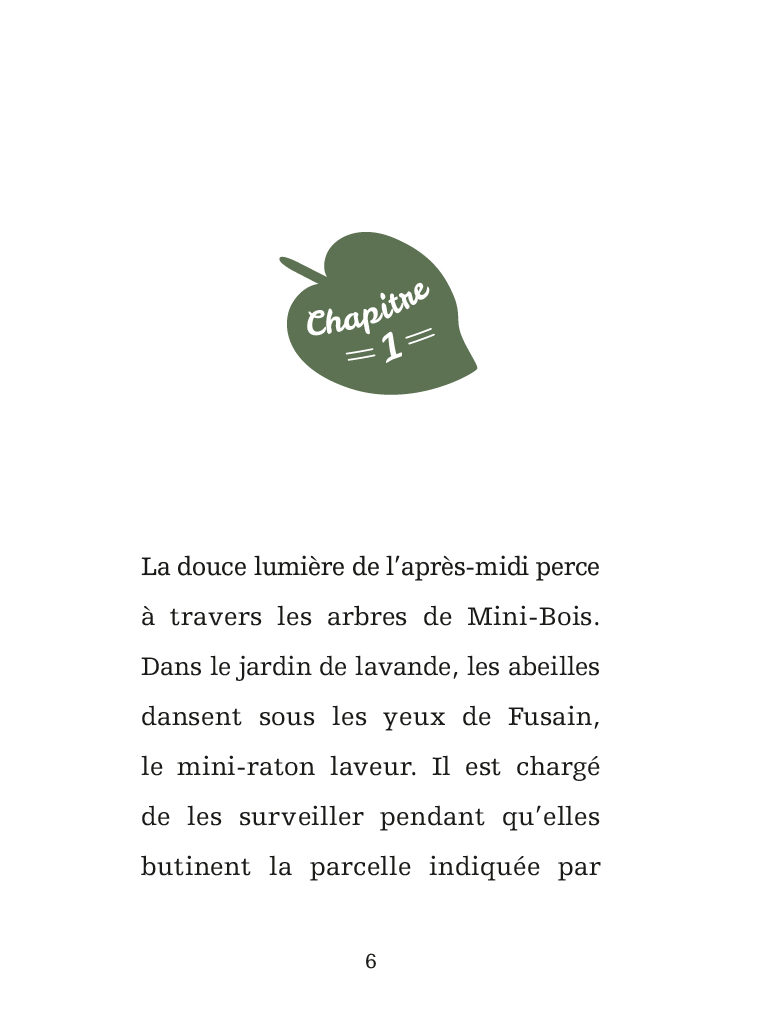 Fusain le mini-raton laveur a une âme d’artiste : il passe son temps à dessiner les abeilles dont son père récolte le miel. Malheureusement, Monsieur Raton laveur lui reproche d’être trop distrait et n’aime pas du tout ses dessins… c’est tout noir charbon, c’est triste ! Fusain rêverait d’avoir des couleurs pour rendre son père fier. Alors quand il apprend qu’il y a dans le marais de l’argile jaune d’or, il part en pleine nuit avec son amie Olive la mini-chauve-souris, en quête de ce trésor.