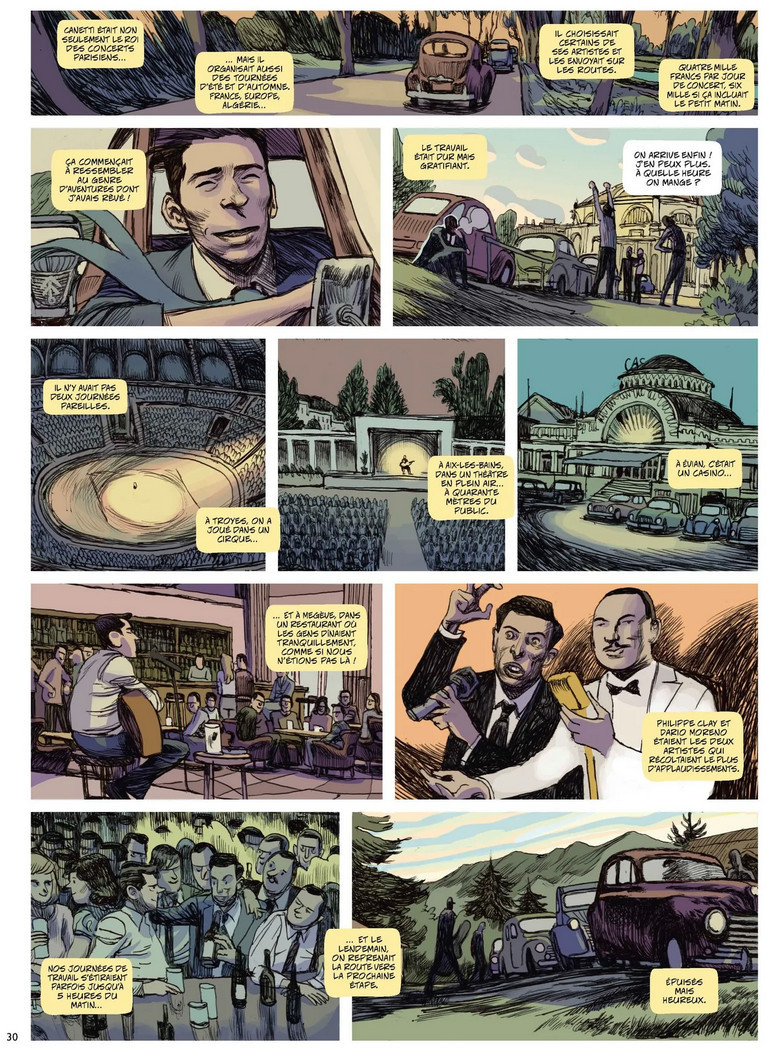 Trouver sa passion, ce qui anime son coeur n’est pas facile et qu’importe son âge. Jacques Brel n’échappe pas à cette règle. Une certitude en tout cas, l’école ce n’est pas pour lui. Alors à 18 ans, il intègre la cartonnerie familiale sans grand entrain. L’aventure l’attend quelque part, il n’en doute pas. Mais pour faire quoi et où? « On sait que l’on est devenu adulte quand on commence à s’ennuyer ». L’esprit créatif doit trouver un échappatoire. L’association de la Franche cordée fera l’affaire même si le swing, les hommes aux cheveux long et les filles en talons sont interdites. Ecrire des articles, des chansons, jouer de la guitare sont déjà des dérobades appréciables. En parallèle, le charme de Miche ne le laisse pas insensible. Très vite, une évidence lui vint. « Miche, il me faut une réponse tout de suite, veux-tu m’épouser? ». Malgré la pression sociale de l’époque, sa femme va le soutenir dans sa volonté de devenir un artiste car elle a vu en lui le germe du talent. Par amour, même avec deux enfants, elle l’incitera d’aller à Paris pour se faire sa place. Le chemin est long, difficile ce qui remet en cause la volonté. Très vite, son réseau d’amis avec Georges Brassens, Juliette Gréco, Jacques Canetti va être présent pour le soutenir, le guider et l’inspirer. Ainsi, il décide de persévérer ce qui va lui permettre d’écrire son premier tube, le début du succès. Il y a un prix à payer pour cela et c’est la famille qui va trinquer. Devenir chanteur demande des sacrifices.