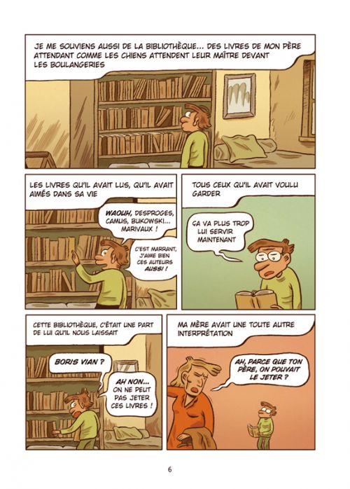 Cilvert est l’égo de papier du dessinateur/scénariste. Il propose de raconter d’ailleurs son chemin jusqu’à son métier à travers ce regard un peu biaisé, limite schizophrène. Après le décès de son père, il a fallu vider la maison pour la vendre. Sa mère ne pouvait gérer seule cette charge financière et cet grand espace. L’émotion est bien présente car les souvenirs se retrouvent partout. Le fait de devoir jeter des affaires est difficile car c’est comme faire disparaître quelqu’un. Un moment pénible qui le renvoie à sa vie et sa pérennité. Cela prend un aspect d’autant plus concret car il a déménagé dans la banlieue de Prague avec sa famille. Il suit sa compagne qui travaille dans l’humanitaire. Quoi faire dans un pays dont on ne maîtrise pas la langue? et que l’on a pas une compétence particulière? Ecrire? Enseigner le français? Et pourquoi pas raconter un récit en dessin? pour être ensuite édité? Un chemin long qui lui a permis de faire aussi le deuil de son paternel à travers les mots. Progressivement, il a su vers quoi se diriger pour trouver ce qui le rend entier. Un livre qui pourrait inspirer ceux qui cherchent ce qu’ils feront quand ils seront grand en étant grand. Au niveau graphisme, la structure reste assez classique. Au niveau graphisme le dessin est propre, net, expressif, tout en rondeur et réconfort. Une lecture sympathique qui donne envie de découvrir les autres publications de l’artiste.