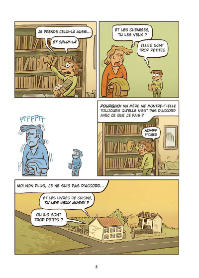 Cilvert est l’égo de papier du dessinateur/scénariste. Il propose de raconter d’ailleurs son chemin jusqu’à son métier à travers ce regard un peu biaisé, limite schizophrène. Après le décès de son père, il a fallu vider la maison pour la vendre. Sa mère ne pouvait gérer seule cette charge financière et cet grand espace. L’émotion est bien présente car les souvenirs se retrouvent partout. Le fait de devoir jeter des affaires est difficile car c’est comme faire disparaître quelqu’un. Un moment pénible qui le renvoie à sa vie et sa pérennité. Cela prend un aspect d’autant plus concret car il a déménagé dans la banlieue de Prague avec sa famille. Il suit sa compagne qui travaille dans l’humanitaire. Quoi faire dans un pays dont on ne maîtrise pas la langue? et que l’on a pas une compétence particulière? Ecrire? Enseigner le français? Et pourquoi pas raconter un récit en dessin? pour être ensuite édité? Un chemin long qui lui a permis de faire aussi le deuil de son paternel à travers les mots. Progressivement, il a su vers quoi se diriger pour trouver ce qui le rend entier. Un livre qui pourrait inspirer ceux qui cherchent ce qu’ils feront quand ils seront grand en étant grand. Au niveau graphisme, la structure reste assez classique. Au niveau graphisme le dessin est propre, net, expressif, tout en rondeur et réconfort. Une lecture sympathique qui donne envie de découvrir les autres publications de l’artiste.
