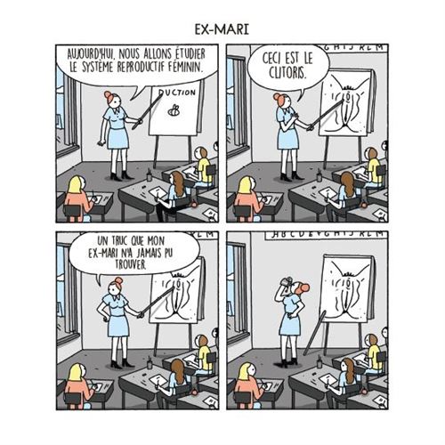 L’ouvrage était présenté comme féministe et drôle. Voilà deux arguments très intéressants à mettre en avant pour une bande dessinée. War and Peas ne manque pas d’imagination et de sarcasme pour faire rire les lectrices. Nous avons le droit à une sorcière qui sort avec un vampire qui adorent faire l’amour ensemble. D’ailleurs lors d’une visite chez le gynéco au moment d’ouvrir les jambes une chauve-souris s’en envole. Un partenaire au combien pratique pendant les règles. Vous l’aurez compris, Jonathan Kunz et Elizabeth Pich, ne manquent pas d’idée et ont vraiment de la suite dans les idées. On trouve également un robot doué d’émotions qui est tombé amoureux de sa créatrice. D’ailleurs par amour, il se fixera un pénis en métal pour satisfaire son aimé. Il y a également un chien, un peu simple d’esprit, qui a des problèmes de reniflage de fesses. On croit trouver la chute aux histoires en quatre cases et l’on est toujours pris au dépourvu. Une vraie surprise qui est un vrai régal de lecture de la première à la dernière page. Aucun doute que je vais le ranger précieusement dans ma bibliothèque et le relire pour me changer les idées. Donc si vous avez un cadeau à faire, vous pourrez faire plaisir et à un prix très raisonnable de 8€.