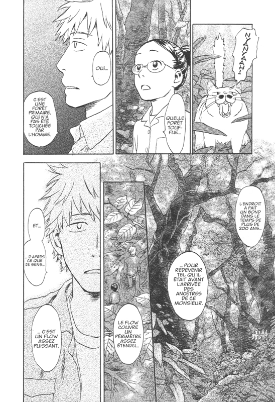 Au vue du titre, on pouvait se demander sur quoi nous allions tomber. Très vite, une réponse s’affiche à nous. Le flow est un phénomène surnaturel lié bien souvent à une personne. Hirota avec son chat, Sachô interviennent pour aussi bien refaire apparaître des angles, des immeubles ou des chiens. Mais ils peuvent aussi aider sur d’autres choses comme aller chercher quelqu’un qui a traversé un miroir ou l’apparition d’un cerisier printanier. La mairie lui a donné un renfort une jeune demoiselle, Chima. On lui donnerait 16 ans à tout casser. Seulement un flow l’a rajeuni et malgré ses 35 ans, aucune ride en perspective. Pourra t’elle trouver le moyen de lever le charme? Les émotions restent au coeur des évènements. Ils bouleversent plus d’une seule vie. La réponse se fera dans la suite. Le contexte est posé et on se laisse porter par l’onirisme ambiant. On peut s’interroger sur jusqu’où va nous mener le récit sur juste 3 tomes? Y aura t’il une fin heureuse pour tout le monde? L’envie de savoir nous pousse à vouloir lire l’intégralité de la série.