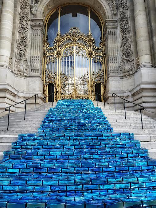 Pour fêter la fin de l’année, certains ont marché sur un tapis rouge. Je propose un bijou fait de briques de verres bleus.