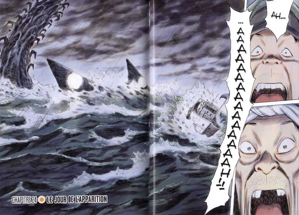 C’est avec une certaine impatience que ce tome se faisait attendre. Naoki Urasawa n’est pas un simple petit scénariste qui débute dans le métier. Il a plus d’une série à succès à son palmarès ainsi qu’un très nombre de prix. Il a le talent de raconter une histoire en semant des petits cailloux pour titiller le lecteur et il le fait avec beaucoup d’ingéniosité. Rien n’est gratuit dans la construction de ces récits. En aucun cas, l’homme considère ces lecteurs pour des imbéciles. Il ne fait pas de tomes pour en faire et inciter les gens à dépenser du temps et de l’argent. Contrairement à quelques uns de ces camarades qui aiment vendre du vent quitte à irriter le lectorat. Encore une fois tout est tiré au cordeau et fait monter la pression. Surtout qu’il créé des personnages à la psychologie fine et travaillée comme l’héroïne haute en couleurs et en témérité. Ce n’est pas parce que c’est une adolescente qu’elle fait n’importe quoi et qu’elle ne pense qu’à elle. Bien au contraire, elle a la tête sur les épaules et n’hésite pas à tenir tête à qui que se soit si cela remet en cause ses valeurs et ses proches. Comment ne pas être sous le charme d’une telle gamine? Ne faudrait-il pas d’ailleurs leur faire lire ce manga? On manque un peu d’héroïne dans les mangas surtout sans grosse poitrine et à moitié nue. A croire que c’est une compétence. C’est à Asa d’entrer en jeu et elle y va franchement sans hésiter à envoyer péter ceux qui remettent en cause son aptitude vis-à-vis de son âge. Le personnage de M. Kasuga a beaucoup évolué et montre sa grandeur d’âme. Il est prêt à tout pour protéger cette enfant qui lui a redonné confiance en lui. Le scientifique, Keiichi Nakaido, trouve progressivement sa place. Pour affronter l’improbable, il faut des données rationnelles. Pour une fois, il va aller sur le terrain pour comprendre à quoi il doit réfléchir. On sait qu’il y a un kaiju des plus impressionnants dans la mer. Va t’il gâcher les JO? Que veut-il? Peut-on le tuer? Doit-on le tuer? Que de questions pour la mise en appétence de notre curiosité qui ne peut que nous inciter à nous plonger dans la suite. Jusqu’où allons-nous être surpris?