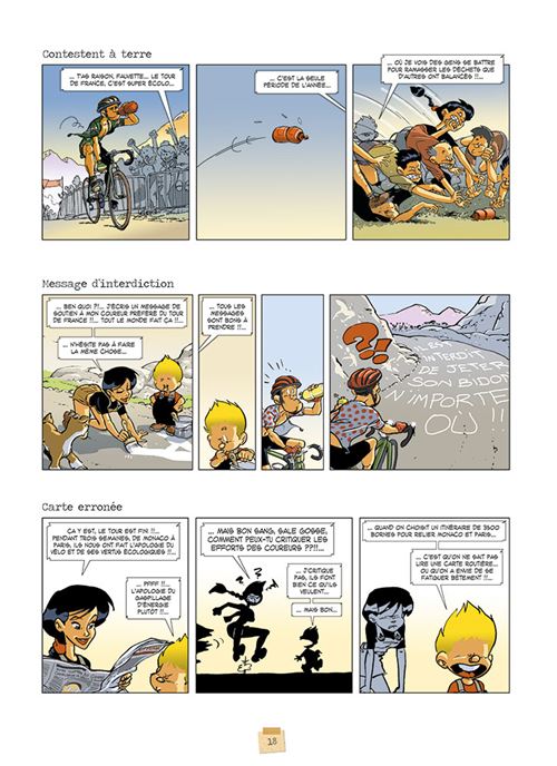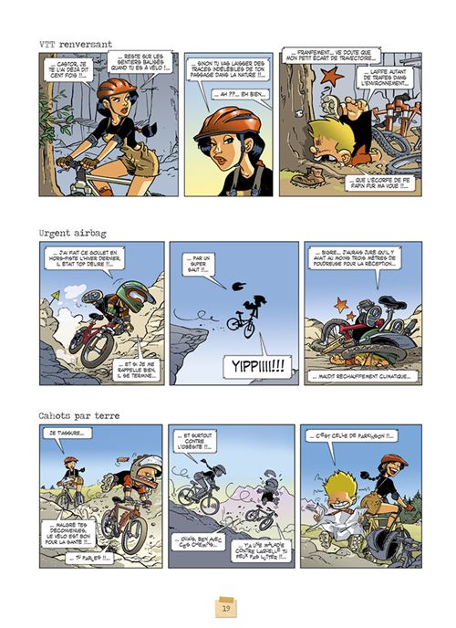 L’écologie est un sujet d’inspiration pour la bande dessinée. Jérôme Phalippou a décidé de s’en inspirer afin d’y mettre trois personnages qui vont réfléchir à leur rapport à la nature, la pollution, la consommation… Ainsi tout va tout être raconté à travers principalement des gags en trois cases. On rencontre une sorte de copie de Tom Raiders en version champêtre qui porte le prénom improbable de Fauvette. Comme elle a tout de l’héroïne de jeu vidéo, les lecteurs pourront mâter une très jolie femme à forte poitrine. Heureusement qu’elle a de la suite dans les idées sinon on aurait pu croire qu’elle serait une potiche. Puis nous avons un petit garçon, blond qui porte le prénom étrange de Castor. Sans grande surprise, il est celui qui polarise l’attention avec l’ensemble de ces gaffes. L’humour repose sur ces erreurs et son tempérament insatisfait. Et enfin, un chevreau qui les accompagne et qui parle. Lui aussi à le droit à une appellation surprenante : Eterlou. Malheureusement le trio ne surprend pas vraiment pas ni sur le fond et ni sur la forme et ne fait pas spécialement rire. Et pourtant, les choses commençaient assez bien avec une histoire de plusieurs pages dès le début. Le scénariste s’amusait de lui-même en s’intégrant dans le récit. On aurait pu croire que cette idée allait être poussée sur la longueur, permettant aussi d’interroger ces propres convictions environnemental. Mais le classicisme reprend le dessus même si quelques intégrations de dessins type croquis se font ici et là. La lecture est au final un peu décevante ce qui n’incite pas forcément à poursuivre avec le tome 2.