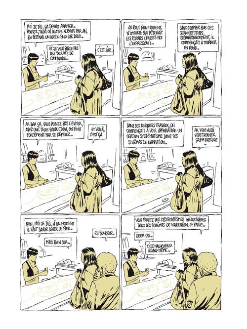 » Les filles, c’est papa… Écoutez, je ne rentrerai pas à la maison ce soir… et peut-être même pendant quelques jours… Vous avez peut-être déjà regardé les infos… Je veux que vous sachiez que votre papa n’est pas un bandit… « Un auteur de bande dessinée, alors qu’il fait ses courses, réalise qu’il n’a pas sa carte de fidélité sur lui. La caissière appelle le vigile, mais quand celui-ci arrive, l’auteur le menace et parvient à s’enfuir.La police est alertée, s’engage alors une traque sans merci, le fugitif traversant la région, en stop, battant la campagne, partagé entre remord et questions existentielles.Assez vite les médias s’emparent de l’affaire et le pays est en émoi. L’histoire du fugitif est sur toutes les lèvres et divise la société, entre psychose et volonté d’engagement, entre compassion et idées fascisantes. Car finalement on connaît mal l’auteur de BD, il pourrait très bien constituer une menace pour l’ensemble de la société.Voici le nouveau récit choral de l’imparable Fabcaro, entre road movie et fait divers, l’auteur fait surgir autour de son personnage en fuite, toutes les figures marquantes – et concernées – de la société (famille, médias, police, voisinage…) et l’on reste sans voix face à ce déferlement de réactions improbables ou, au contraire, bien trop prévisibles.