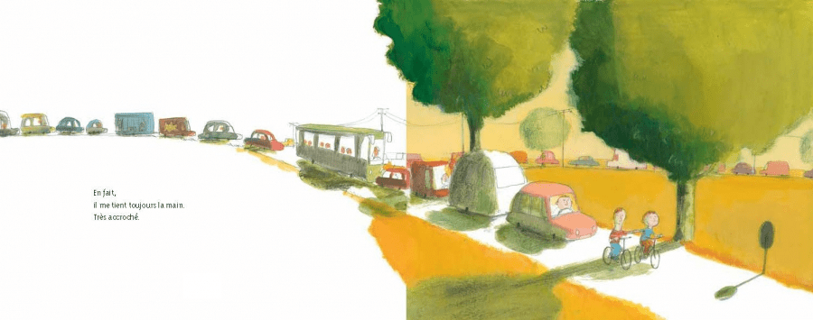 Thomas Scotto propose une histoire qui est bien rare de trouver dans la littérature jeunesse. Dès le premier âge, les parents et adultes veulent déjà sexuer leurs enfants en disant « tu as une petite copine/copain? », « vous vous êtes déjà fait des bisous ». Pourquoi devrait-il penser à 4/8 ans à des relations de couples? Ils n’ont pas déjà vraiment conscience d’eux ni du monde, pourquoi vouloir leur imposer un modèle clivant et fermé? Le scénariste raconte d’histoire de Raphaël 4/5 ans qui aime Jérôme car ils partagent des choses ensemble. A cet âge là, il ne faut pas y voir une ode à l’homosexualité qui ferait sortir de ses gonds les extrémistes de tous bords. Aimer s’est être attaché à quelqu’un pendant un temps et bien souvent ça change régulièrement surtout quand ils sont petits. La notion même d’amitié est difficilement comprise. Qu’importe si c’est un garçon ou fille, cela n’a aucune importance. D’ailleurs, cela ne devrait avoir aucune importante pour les grands non plus car on devrait pouvoir aimer qui on veut sans avoir le jugement, la haine et la violence des autres. Cela peut s’apprendre et commencer grâce à des livres sur l’amitié, la tolérance, l’honnêteté de ce que l’on ressent et dépasser ces peurs. On peut préparer le terreau de l’ouverture et non celui de la colère et de la crainte. Olivier Tallec comme à son habitude nous ravie de son univers graphique plein de tendresse et sa délicatesse. C’est un régal de tourner les pages d’autant plus au vue du sujet qui risque de faire quelques rageux.