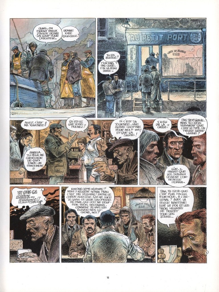 Il est bon parfois de se replonger dans ces albums qui ont fait l’Histoire de la bande dessinée. Et surtout ceux qui ne sont pas issues de séries humoristiques toujours en vie comme « Spirou et Fantasio » ou « Yoko Tsuno ». On prend de nouveau les repaires de la science-fiction avec d’un côté au dessin Enki Bilal et au scénario Pierre Christin. Un duo qui partage des valeurs, des envies et des colères qu’ils ont traduit dans des oeuvres communes et respectives. Pour ce second tome de la trilogie des « Légendes d’aujourd’hui », nous allons en Bretagne avec toute la culture locale. On s’amuse à lire un kenavo par-ci et d’autres clins d’oeil par-là. Pas besoin de mettre un drapeau breton pour savoir où le récit se déroule, même si la ville reste fictive. « On sait, ni Blanc, ni Rouge, Bretagne d’abord ! » Mais le terroir doit faire face à des puissants riches, des promoteurs immobiliers et à l’état, qui sont très liés l’un à l’autre. Le château de Lanouille est en danger. « – Oh, tout est réglé. Il sera démonté pierre à pierre… de toute façon, il était assez mal placé pour les visites. – On le remontera dans le parc régional prévu sur la Lande… On va paysager tout ça et il y aura des véhicules électriques pour l’atteindre… – Oui, il sera au milieu de la réserve d’animaux exotiques… et on a aussi prévu des circuits piétonniers fléchés… » Ceux qui possèdent le pouvoir jouent avec la nature, la vie des gens sans aucun scrupule. Si on bouge les choses, on les détruit, on les assemble… que pour faire de l’argent, parfois on fait face à une résistance. Voila que l’Ankou, le vieil homme qui garde le château depuis si longtemps que personne ne se souvient la date. Il va allier, grâce à une charmante jeune femme, les ouvriers, les paysans, les pêcheurs et tout ceux rattachés à cette terre du fond des âges. La magie va leur permettre de partir ensemble avec leurs morts, leurs traditions, leurs objets, leurs maisons sur une nouvelle terre où ils pourront être ensemble et continuer leur vie. Rapidement, ils vont sympathiser avec la population locale. On sent que cette migration va être constructive. L’esprit de mai 68 souffle dans cette aventure fantastique où la solidarité prend toute sa place face à l’injustice. Une réflexion construite et poussée qui ne peut laisser le lecteur indemne. Même si la fin peut nous laisser pensif. « Un terrain vierge comme celui-là, c’est de l’or en barre, croyez-moi. Savez-vous que j’ai déjà eu des propositions d’EDF pour une centrale nucléaire de moyenne importance? » Rien ne se perd, tout se transforme.