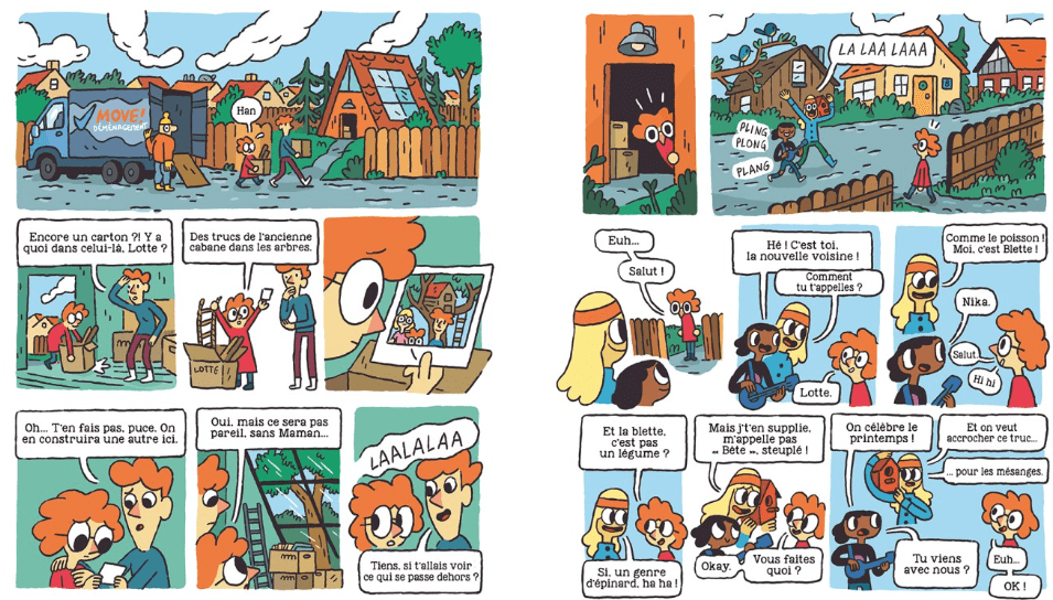 A Teckelville, la vie d’adolescentes n’est pas toujours sans intérêt. Déjà, il y a les tâches à faire à la maison que les parents demandent de réaliser. Même si ranger la cuisine ou préparer des objets à vendre au vide-grenier n’est pas du plus captivant. Il ne faut pas oublier ces passions que l’on veut faire aboutir jusqu’à la perfection ou pas très loin. Pas besoin d’habiter dans une capitale pour s’occuper intelligemment. Quand Lotte arrive, Nika et Blette l’accueillent les bras ouverts. Aussitôt rencontrées, aussitôt liées par l’amitié. Chacune décide de participer aux projets des autres et de les soutenir quoi qu’il en coûte. Ainsi ensemble, elles vont installer un nichoir sur un arbre, construire un vélo hors du commun et même affronter des garçons dans une bataille de boules de neige. Quand il est question de garçons, d’autres réflexions se mettent en place. Ils ne sont pas si intéressants que ça, pour l’instant du moins. Certains commencent à faire des propositions pour passer du temps en tête à tête et d’autres cherchent l’embrouille ce qui mérite une remise en place. La tolérance et le respect ne sont pas que des mots. D’autres sujets importants leur tiennent à coeur comme l’écologie et par conséquent, elles portent un regard plus réfléchit sur la société de consommation.