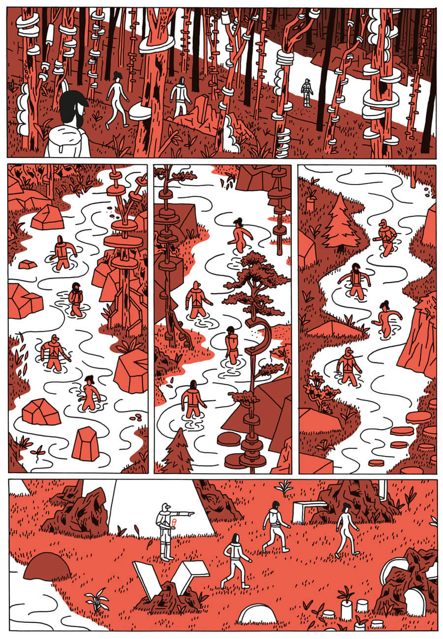 Crépuscule met en scène des êtres humains seuls et démesurément insignifiants lorsque la nature sauvage décide de reprendre ses droits. Pure variation de la dialectique : Man vs Wild, l’homme, en figure d’apprenti-sorcier, joue avec sa technologie et provoque infailliblement une chaîne de réactions incontrôlables… Jérémy Perrodeau – Kaspard David Friedrich reborn ! – transfigure un récit romantique de SF en épopée western seventies.